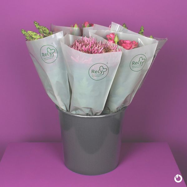 The Recy Sleeve is an excellent example of circular packaging innovation. As an alternative to our regular plastic sleeves which are mono material and fully recyclable, the Recy sleeve is made from 100% recycled PP flower sleeves that are collected from the Dutch flower auctions with the Circular Bag. The Recy Sleeve is an ideal packaging solution that protects flowers during transportation without placing an unnecessary burden on the environment.